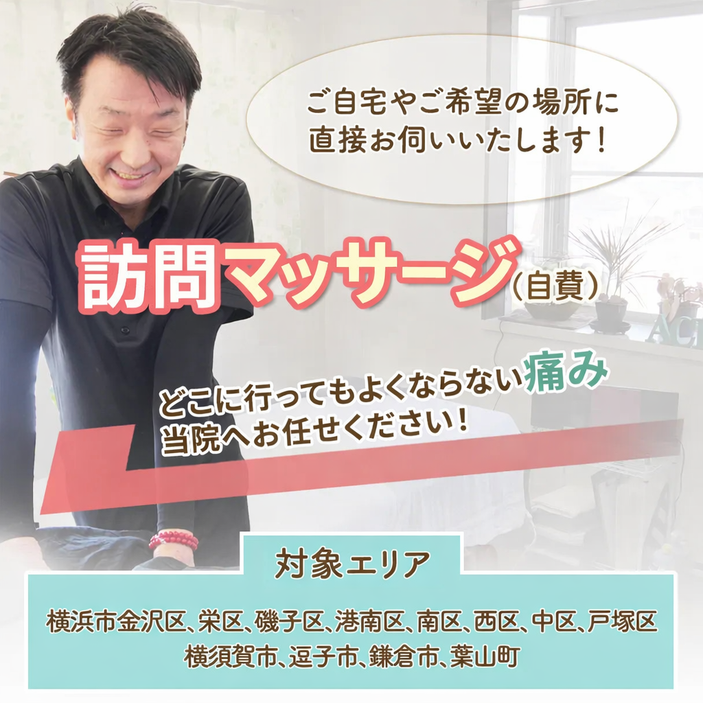訪問治療とは、ご自宅やご希望の場所に鍼灸師・整体師が直接お伺いし、施術を行うサービスです。